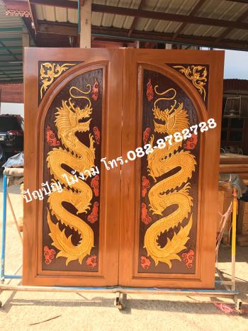ประตูไม้สักทอง ชุดใหญ่หน้าบ้าน กระจกนิรภัย