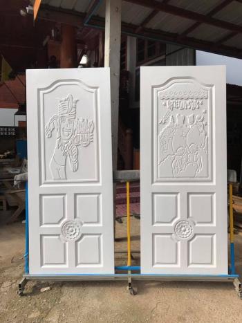 ประตูไม้สักทอง ชุดใหญ่หน้าบ้าน กระจกนิรภัย