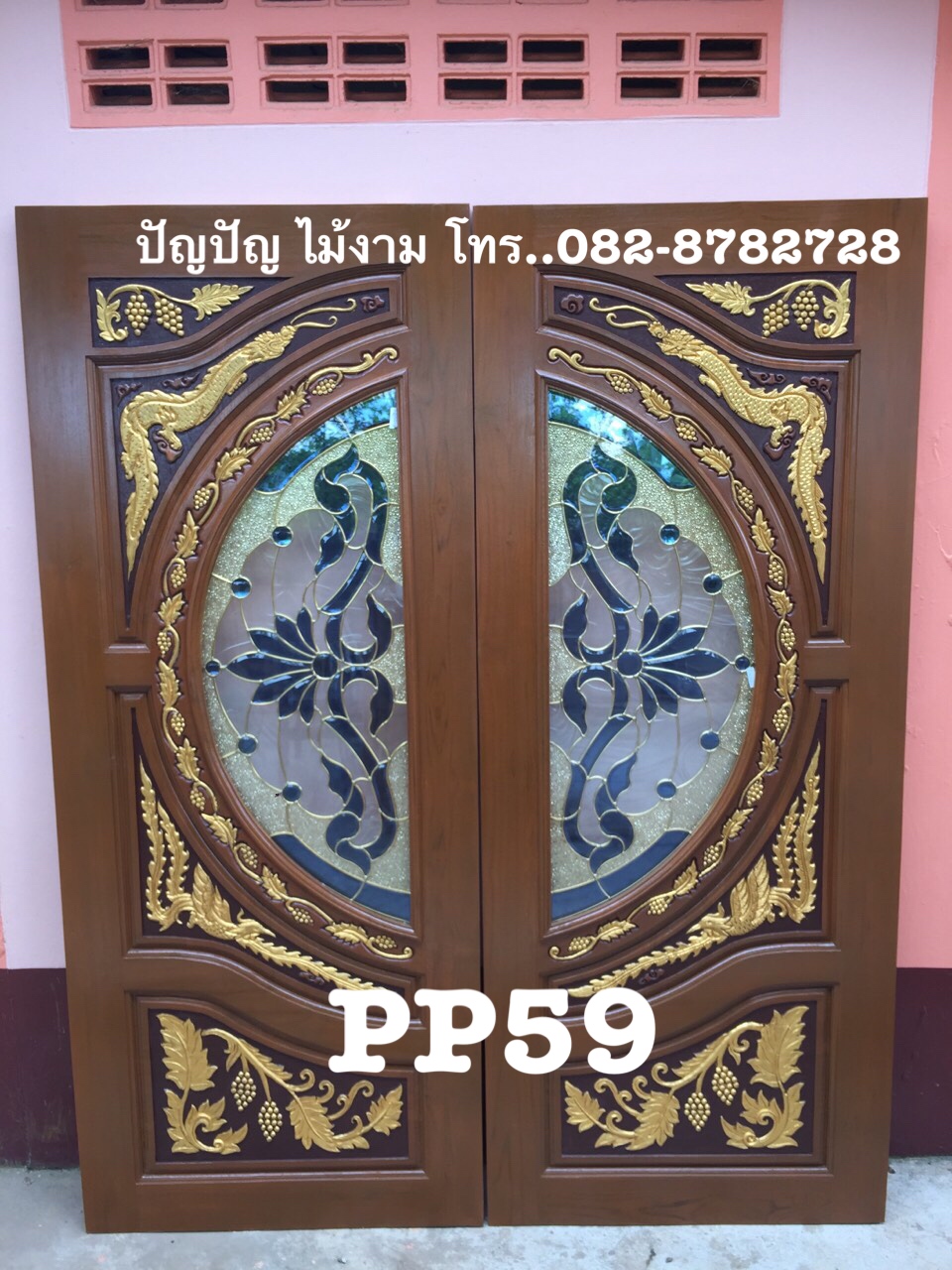 ***ชุดประตูไม้สักทอง พร้อมกระจกนิรภัย 2 ชิ้น ทำสี ส่งฟรี พร้อมวงกบ***