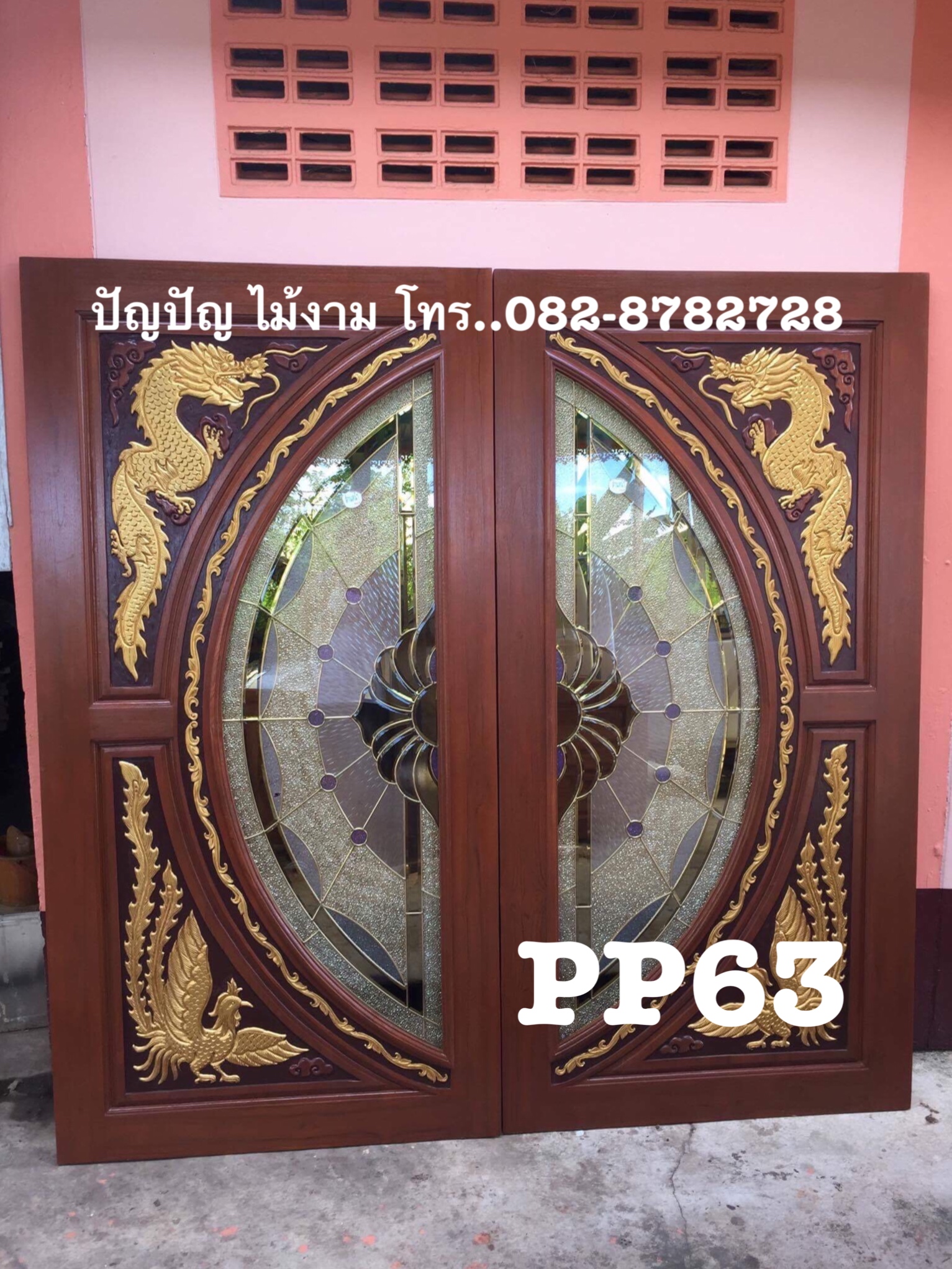 ***ชุดประตูไม้สักทอง พร้อมกระจกนิรภัย 2 ชิ้น ทำสี ส่งฟรี พร้อมวงกบ***